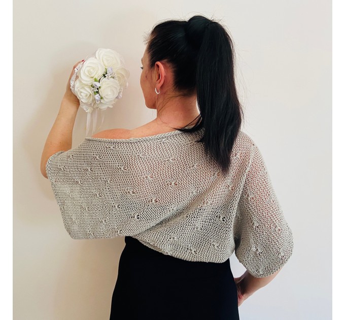 This bolero cape will wrap your shoulders comfortably on a holiday, party or cool evening. The shawl is made of soft and warm yarn, a mixture of wool and acrylic
