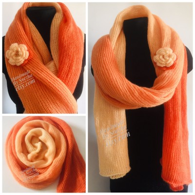 Rainbow Mohair scarf women, Lace crochet shawl wraps, Knitted long striped winter scarf men, Gradient shawl mohair, Floral light oversized scarf,