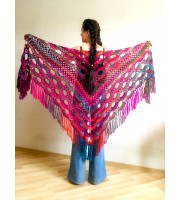 Rainbow Crochet Shawl Wraps With Fringe Triangular Colorful brooch Evening Hand Knitted Shawl Multicolor Shawl Lace Warm Wool Chic Shawl
