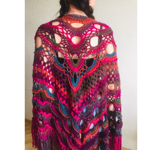 Crochet Multicolor Shawl Wrap Lace Triangle Boho Shawl Colorful Rainbow Shawl Fringe Big Crochet Shawl Hand Knitted Shawl Evening Shawl