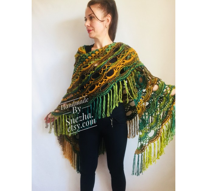 evening crochet wrap, brown knit shawl, shawl with fringe, lace triangle shawl, mustard yellow shawl, Colorful shawl, rainbow shawl, hand knitted shawl, multicolor shawl, Boho shawl, big crochet shawl, handmade lace shawl, brown knit wrap,