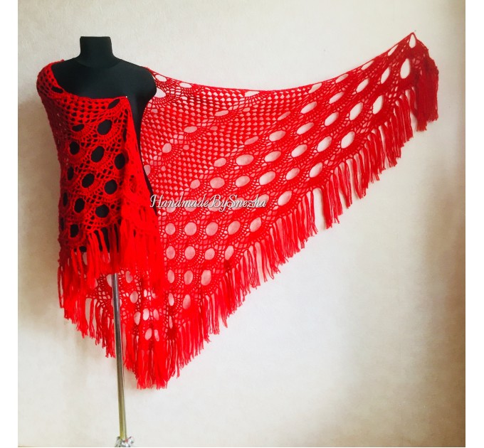 Red Shawl, Crochet Shawl Wraps, Triangle Black Shawl, Fringe Shawl, knitted shawl, Black Shawl, Triangle Scarf, Boho Shawl Lace, Women Shawl, Evening Scarf, Black Floral Scarf, Hand Knit Scarf, Mohair Shawl,