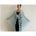 Mint Crochet Triangle Shawl with Mohair Fringe Wool wedding bridal bride bridesmaid capelet cape